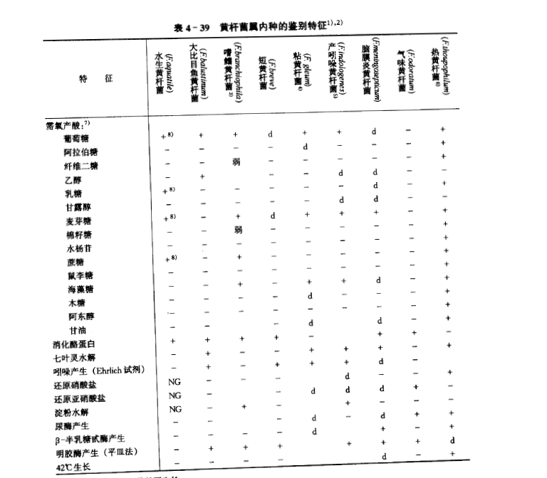 直杆状,端圆,通常为0.5μm X 1.0-3.0μm,细胞内不含聚和羟基丁酸盐,不形成内生孢子,革兰氏阴性。不运动,无滑动或泳动。严格好氧。外环境分离物可在37°C生长。在固体培养基上生长,产生典型的色素(黄色或橙色),但有些菌株不产色素。菌落半透明(偶尔为不透明),圆形(直径1-2mm),隆起或微隆起,光滑且有光泽,全缘。接触酶、氧化酶、磷酸酶均阳性。不消化琼脂。有机化能营养。在低浓度蛋白陈培养基中由碳水化合物产酸不产气。DNA的G+Cmol%为31-45。广泛分布在土壤和水中,在生肉、乳类和其他食物以及医院环境和人类的临床标本中都有检出。