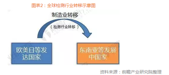 随着世界范围内的产业转移,制造业由发达国家向发展中国家转移的趋势更为明显,与制造业密不可分的检验检测行业也也随之从世界范围内产业转移,由发达国家转向发展中国家。目前,全球范围内大型综合性检测机构基本上来自欧洲、美国和日本等发达国家和地区,而接受地区则集中在中国和其他东南亚国家。