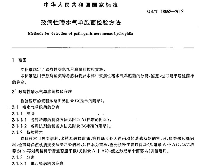 GB/T 18652-2002 致病性嗜水气单胞菌检验方法