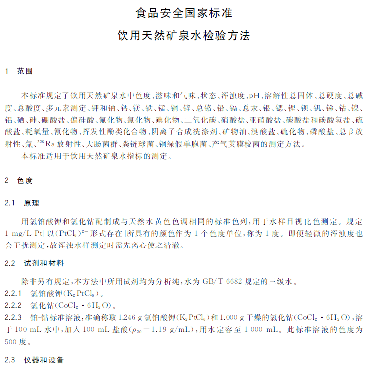 GB 8538-2022 食品安全国家标准 饮用天然矿泉水检验方法