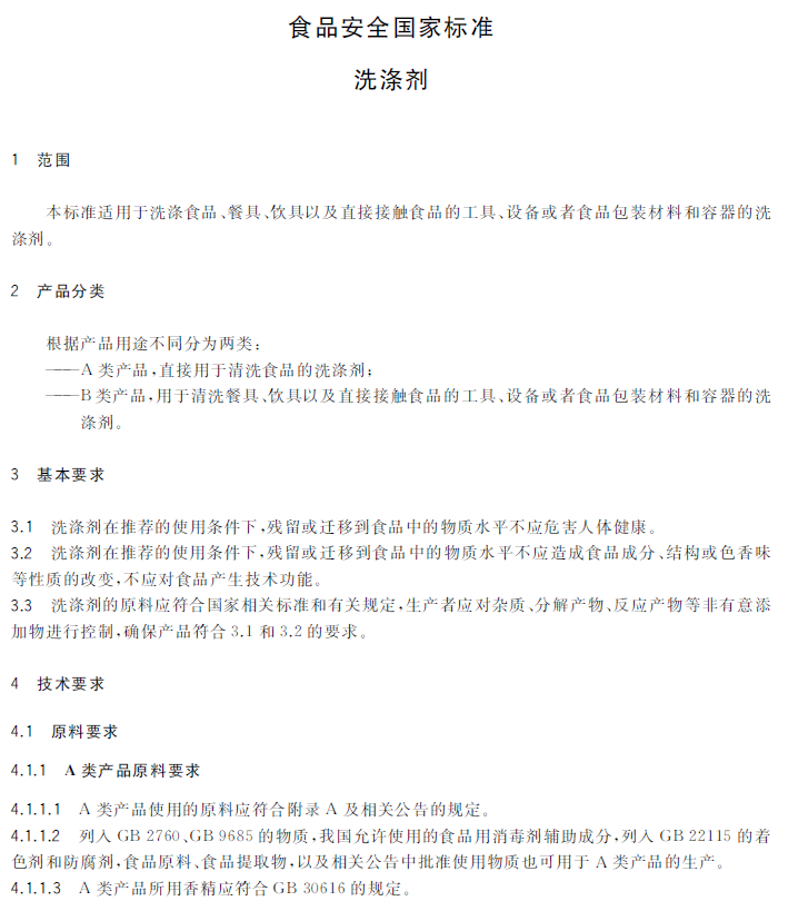 GB 14930.1-2022 食品安全国家标准 洗涤剂