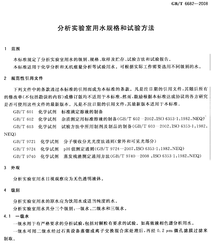 GB/T 6682-2008 分析实验室用水规格和试验方法(ISO3696:1987 MOD)