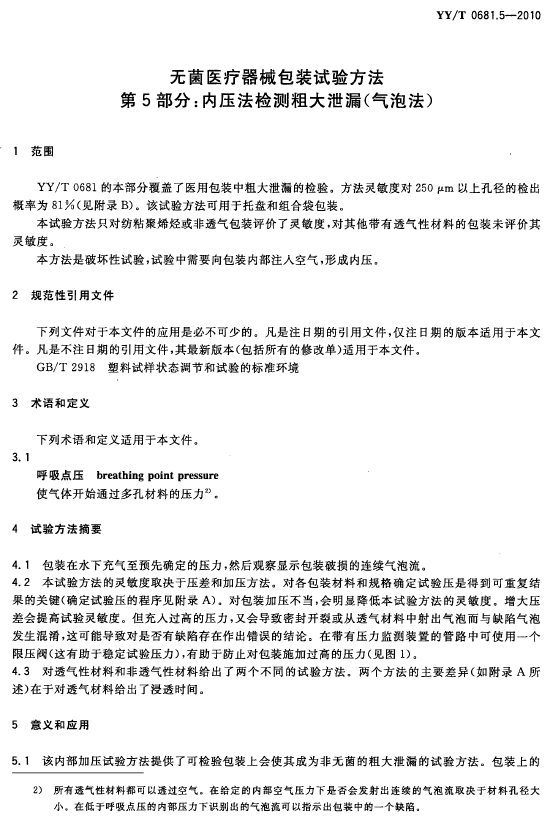 YY/T 0681.5-2010 内压法检测粗大泄漏(气泡法)