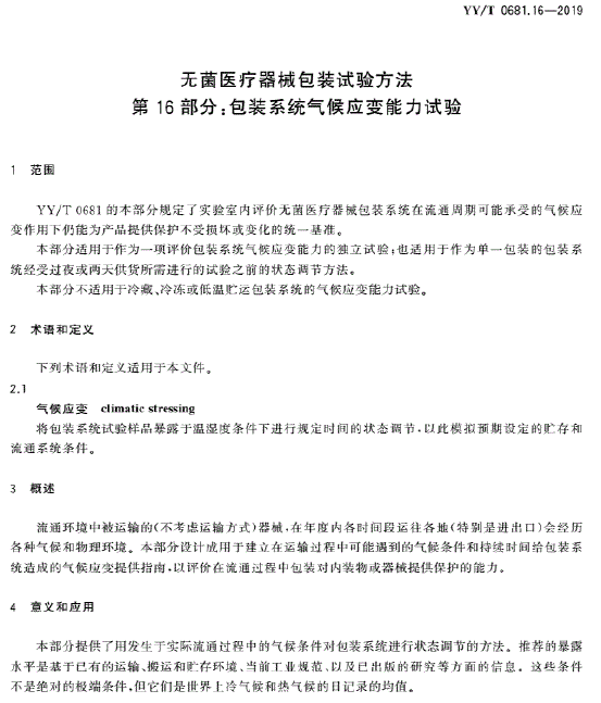 YY/T 0681.16-2019 包装系统气候应变能力试验