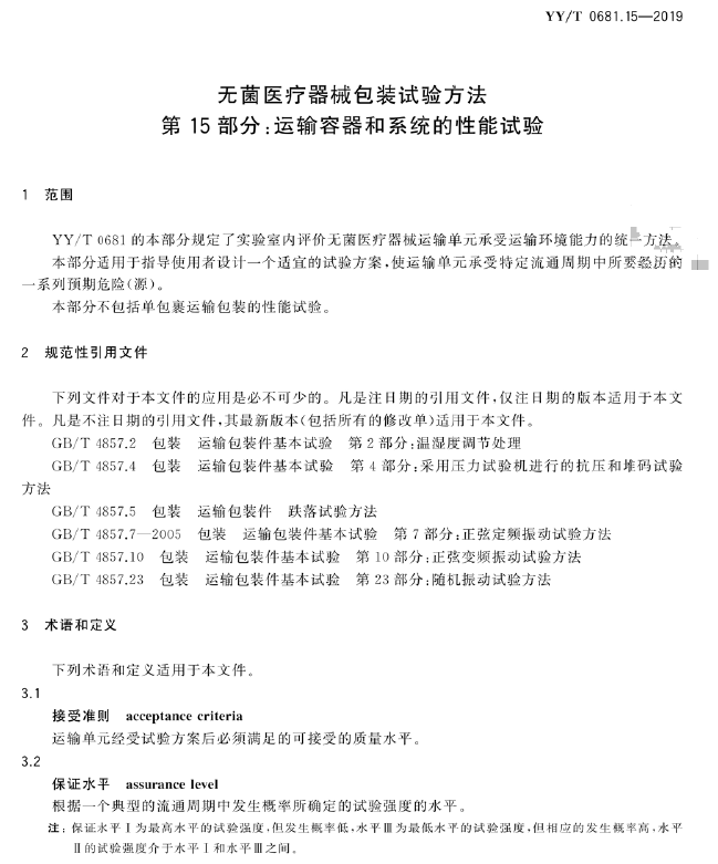 YY/T 0681.15-2019 运输容器和系统的性能试验