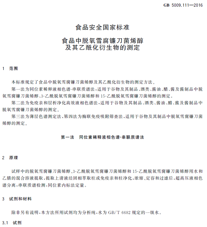 GB 5009.111-2016 食品中脱氧雪腐镰刀菌烯醇及其乙酰化衍生物的测定