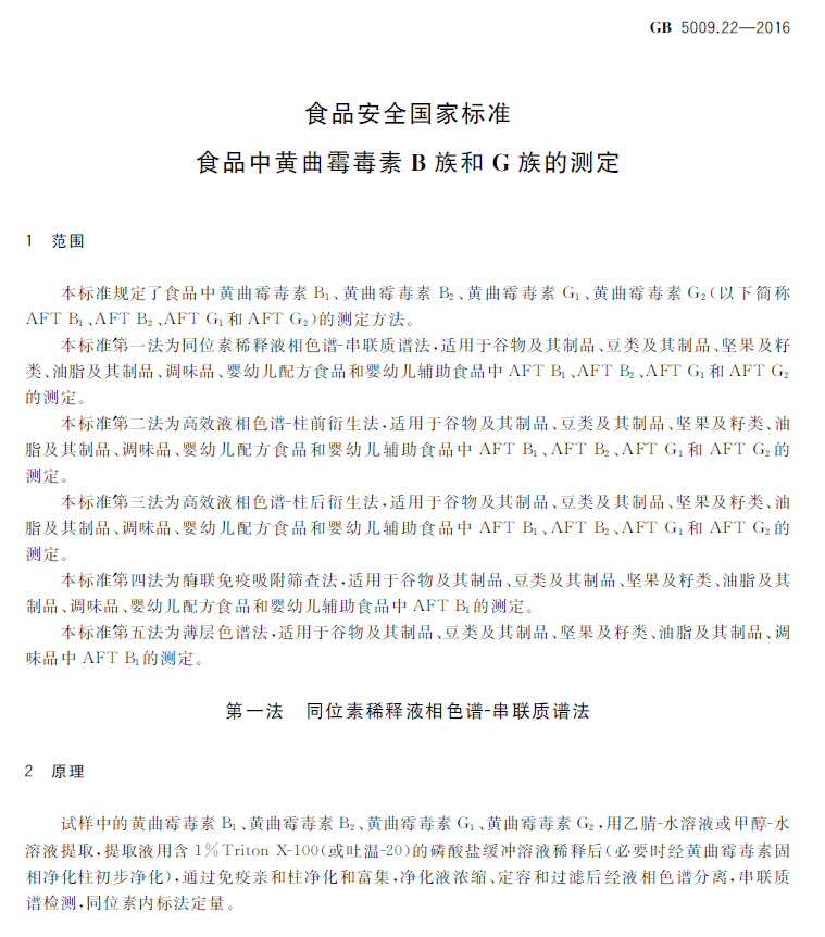GB 5009.22-2016 食品中黄曲霉毒素B族和G族的测定