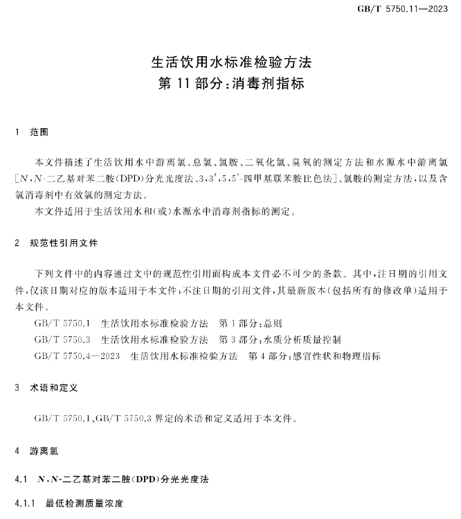 GB/T 5750.11-2023 生活饮用水标准检验方法 第11部分 消毒剂指标