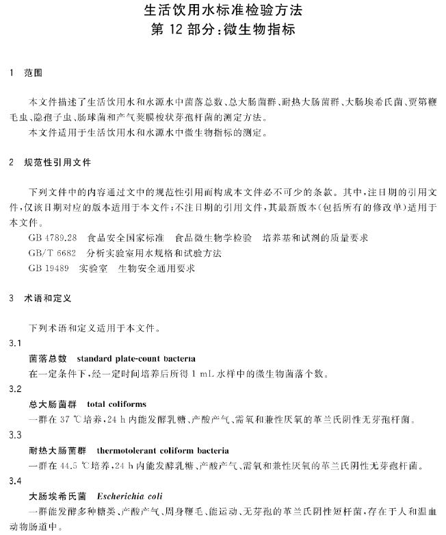 GB/T 5750.12-2023 生活饮用水标准检验方法 微生物指标