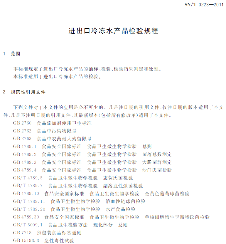 SN/T 0223-2011 进出口冷冻水产品检验规程