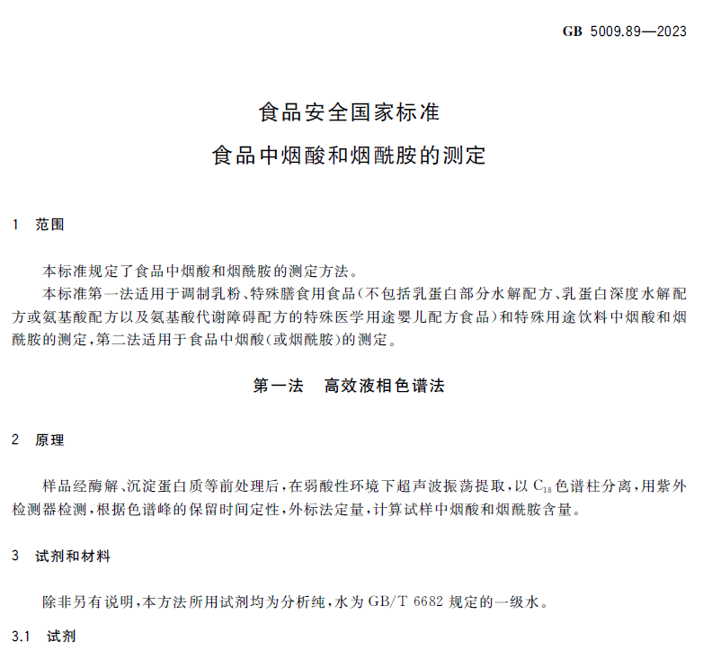 GB 5009.89-2023 食品安全国家标准 食品中烟酸和烟酰胺的测定