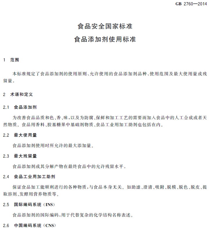 GB 2760-2014 食品安全国家标准 食品添加剂使用标准