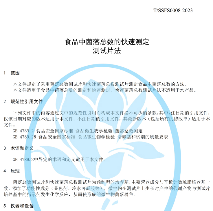 T/SSFS0008-2023 食品中菌落总数的快速测 定测试片法