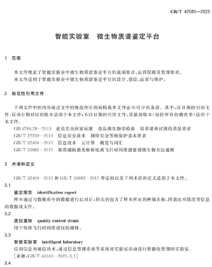 GB/T 42580-2023 智能实验室 微生物质谱鉴定平台