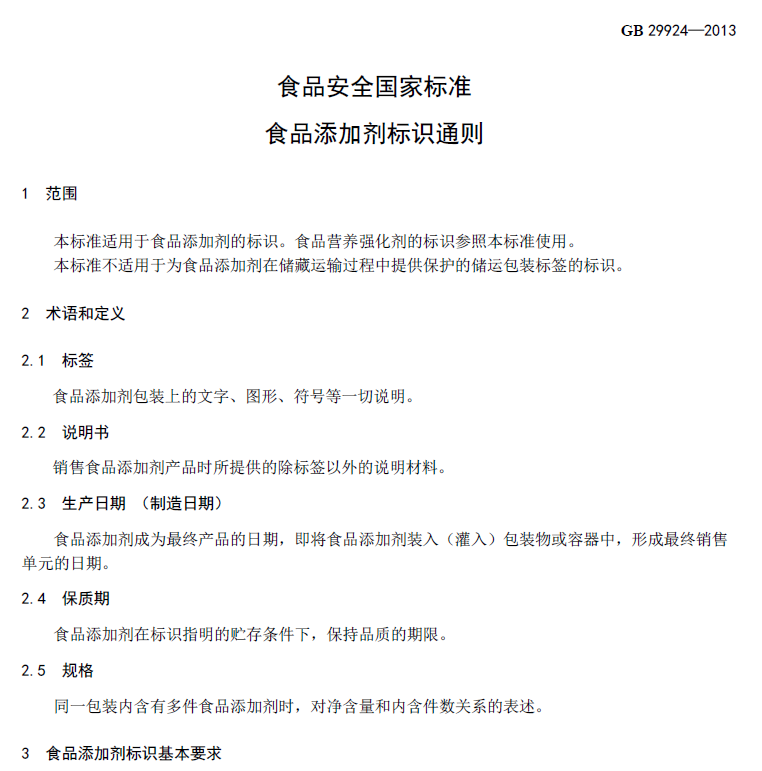 GB 29924-2013 食品安全国家标准 食品添加剂标识通则