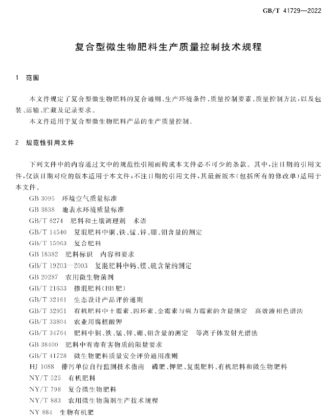 GB/T 41729-2022 复合型微生物肥料生产质量控制技术规程