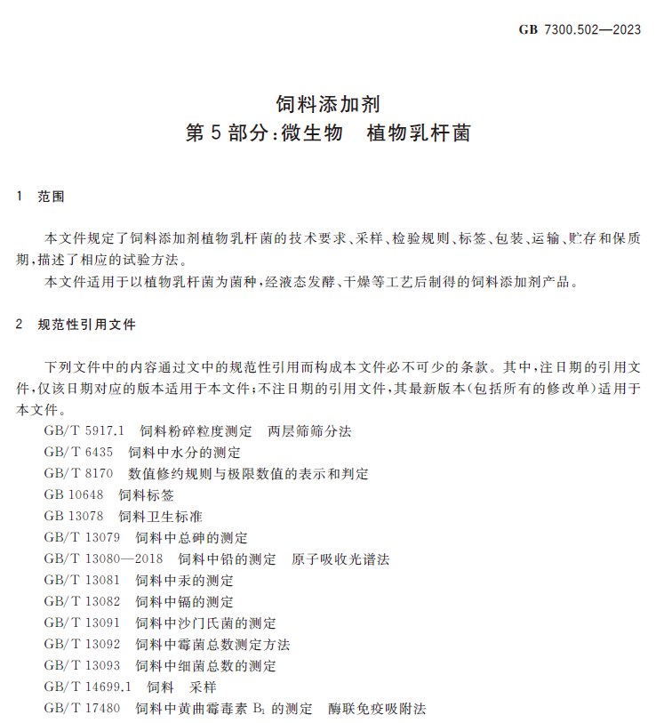 GB 7300.502-2023 饲料添加剂 第5部分:微生物 植物乳杆菌
