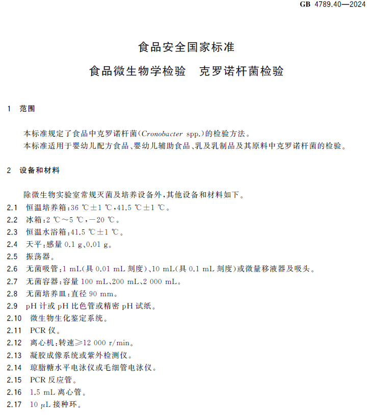 GB 4789.40-2024 食品安全国家标准 食品微生物学检验 克罗诺杆菌检验