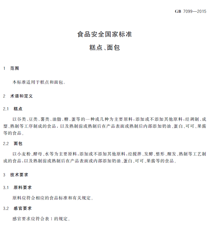 GB 7099-2015 食品安全国家标准 糕点、面包