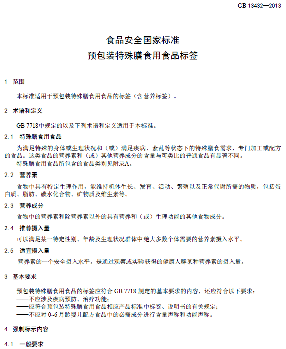 GB 13432-2013 食品安全国家标准 预包装特殊膳食用食品标签
