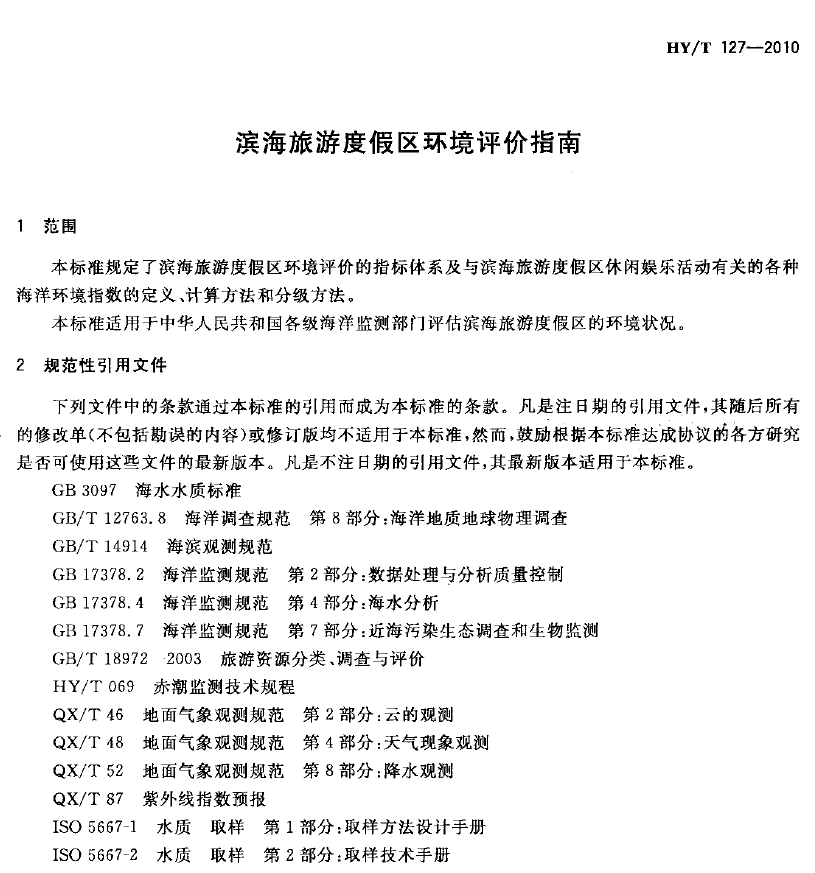 HY/T 127-2010滨海旅游度假区环境评价指南