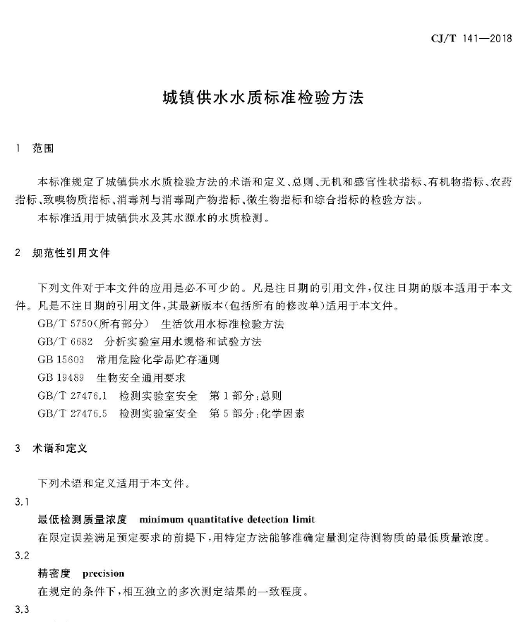 CJ/T 141-2018 城镇供水水质标准检验方法