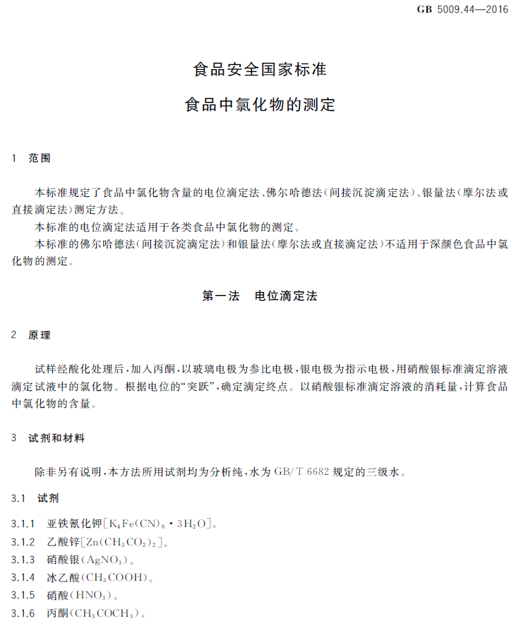 GB 5009.44-2016 食品安全国家标准 食品中氯化物的测定
