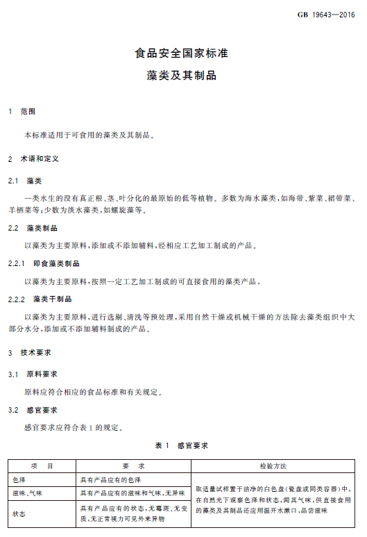 GB 19643-2016 食品安全国家标准 藻类及其制品