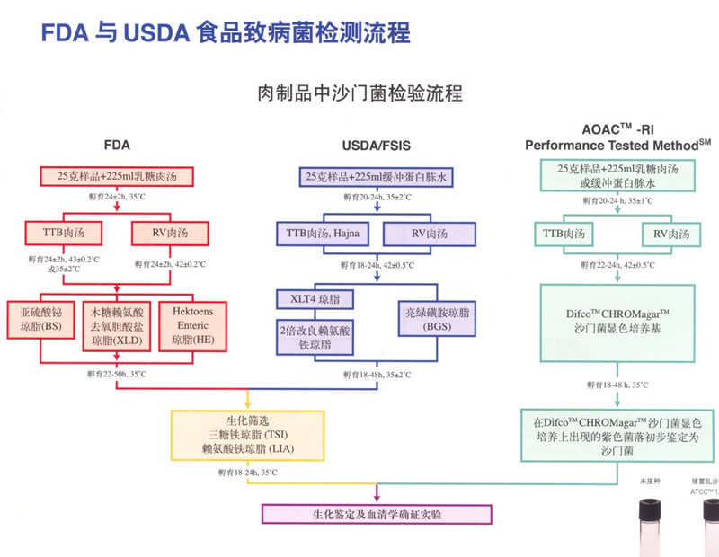 FDA与USDA食品致病菌检测流程中肉制品中沙门菌检测流程,让大家对其检测过程有个更加深入的了解。