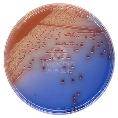 应用范围:大肠杆菌O157:H7显色培养基是青岛海博生物公司改良的培养基,用于食品、病人粪便样品中O157:H7菌的快速检测。O157:H7菌显亮红色、淡红色或红色,菌落周围没有蓝色晕圈,大肠杆菌和大肠菌群显暗蓝色、蓝色或紫色,菌落周围有蓝色晕圈;其它细菌显蓝色、黄色或无色。本培养基的特异性高,可以克服SMAC培养基引起的假阳性和假阴性结果,是一种很理想的快速检测培养基。