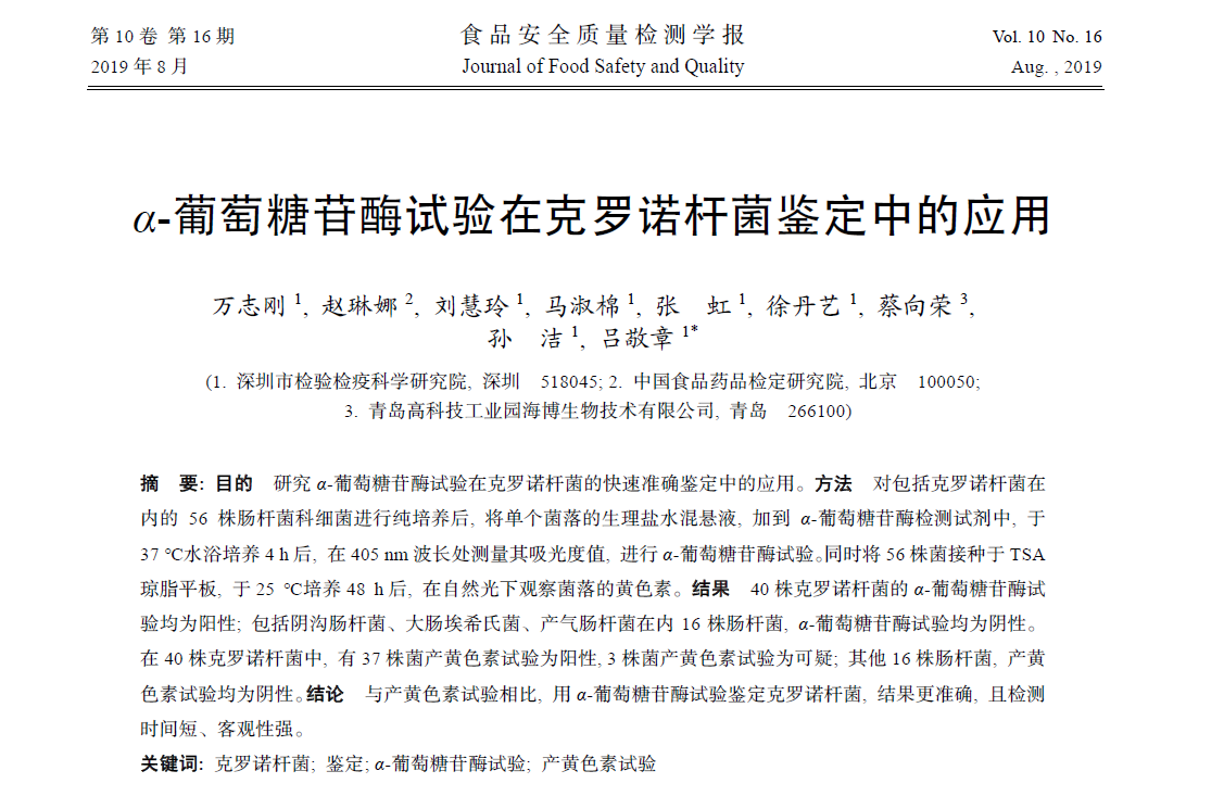 α-葡萄糖苷酶试验在克罗诺杆菌鉴定中的应用