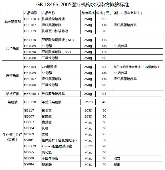 GB18466-2005 医疗机构水污染物排放用培养基核算表
