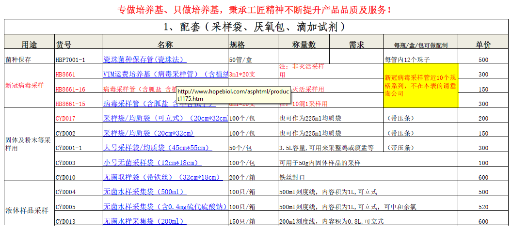2、本表较往年,最大的特色是将每种产品添加了超链接,双击产品即可进入海博官网,查看更详细的产品信息(如产品图片、 添加剂、配方、原理、质控及部份操作视频等) |