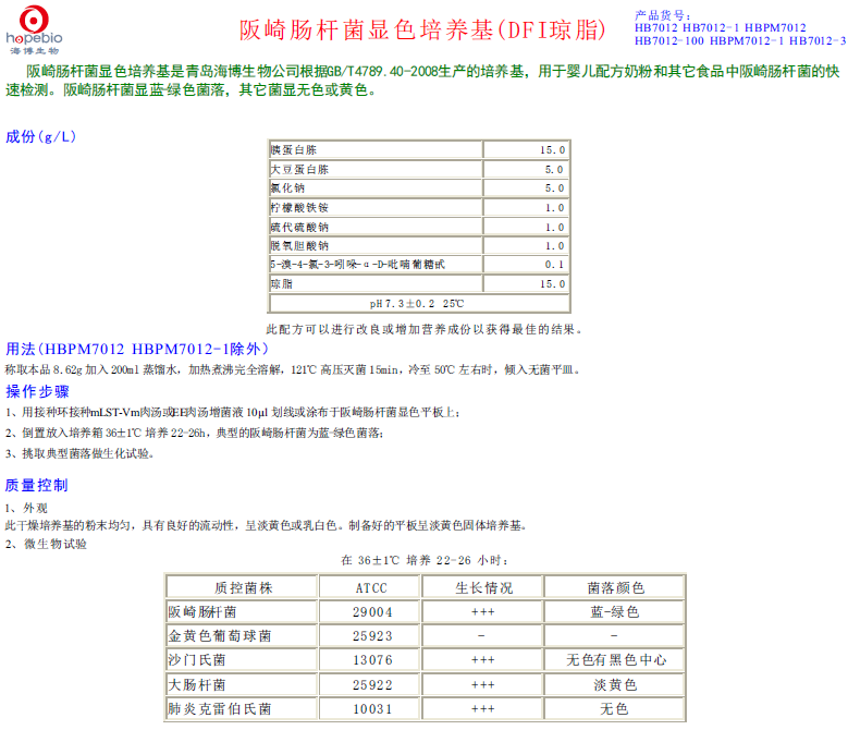 7012阪崎肠杆菌显色培养基(DFI琼脂)