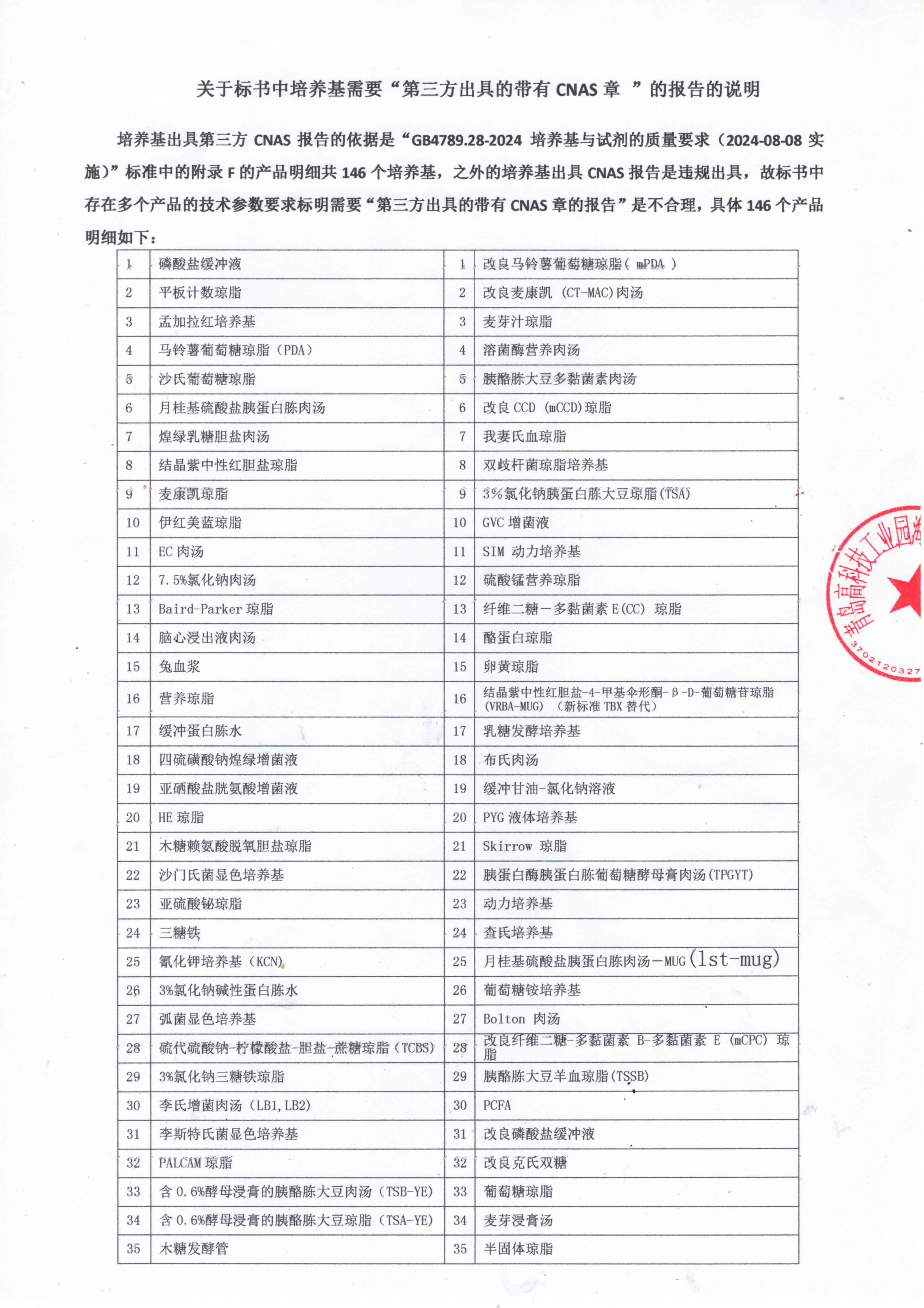 关于培养基需要第三方CNAS章的报告的说明