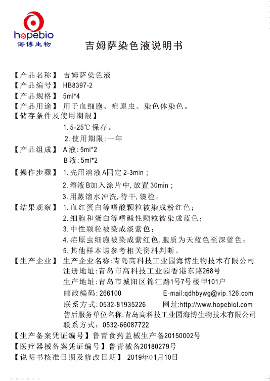 HB8397-2 吉姆萨染色液(医疗) 说明书