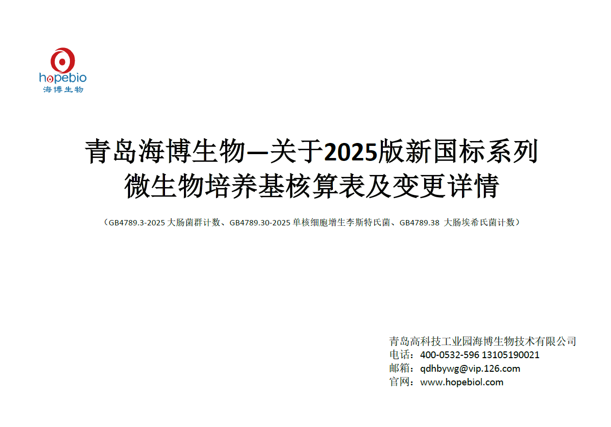 青岛海博生物-关于2025版新国标(单增、大肠菌群、大肠埃希氏菌)系列微生物培养基核算表及其变更详情