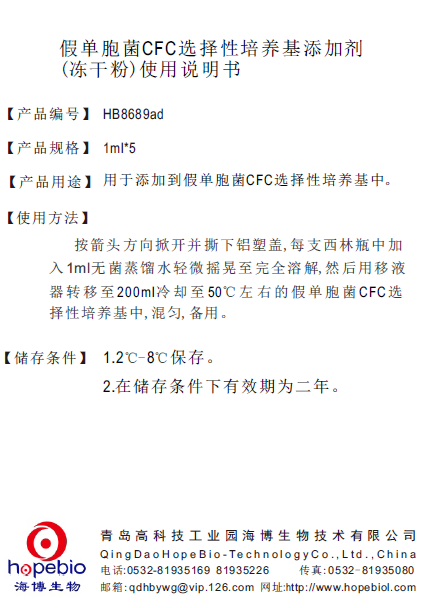 HB8689ad假单胞CFC选择性培养基添加剂(冻干)说明书