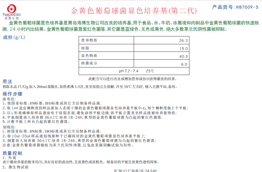 HB7009-5 金黄色葡萄球菌显色培养基(第二代)