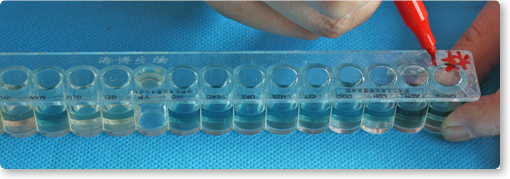 4、接种完后,在生化鉴定条上记录样品号,盖上外盖,放置36±1℃培养。
